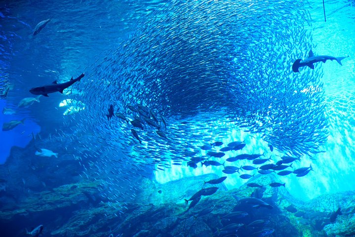 Respecto a números, se conocen al menos 1.500 especies de peces que son bioluminiscentes, incluyendo tiburones y peces demonio, y cada día aparecen descritas nuevas especies bioluminiscentes. Los peces más llamativos son los peces abisopelágicos como los lofiformes, cuyas hembras tienen un cebo de carne brillante que atrae a las presas para que se acerquen y capturarlas más fácilmente. También es conocido el caso de los calamares hawaianos que se iluminan con bacterias bioluminiscentes en simbiosis, cuya función es de camuflaje (la luz emitida los camufla contra la luz de la luna en la superficie eliminando su sombra, ocultándolos así de los depredadores).